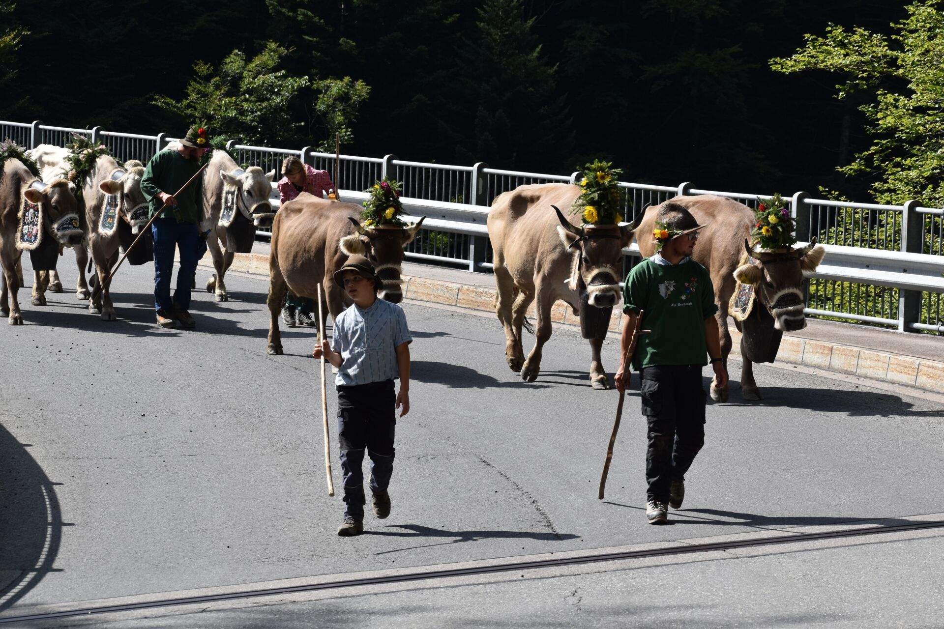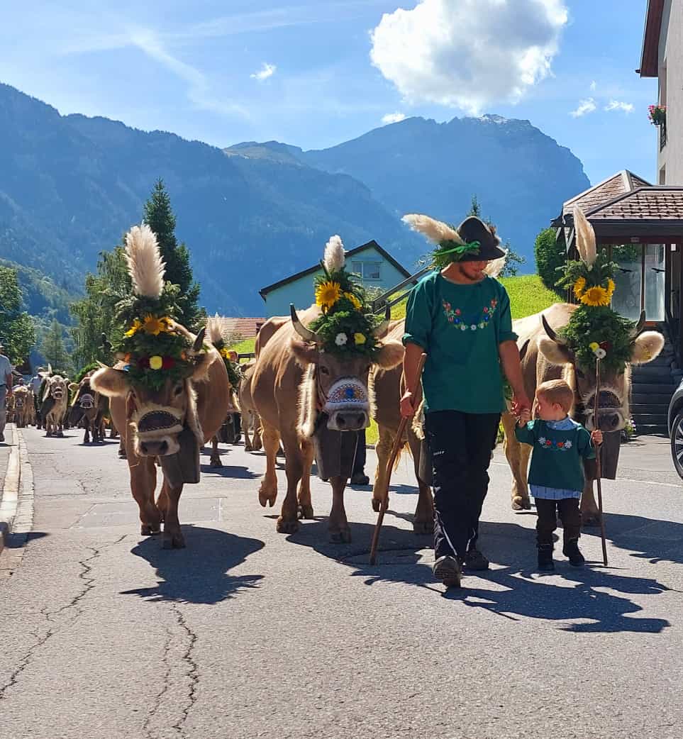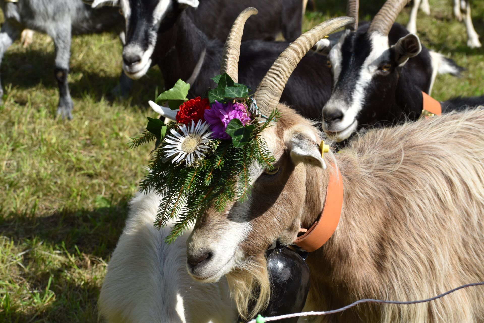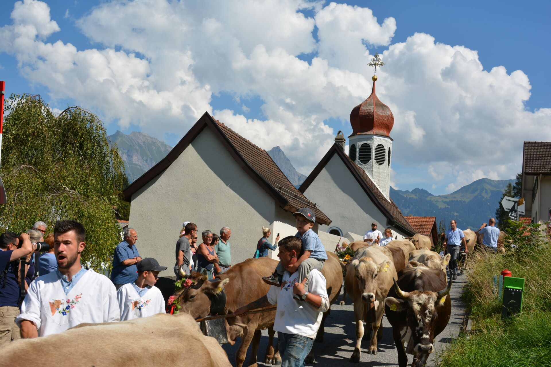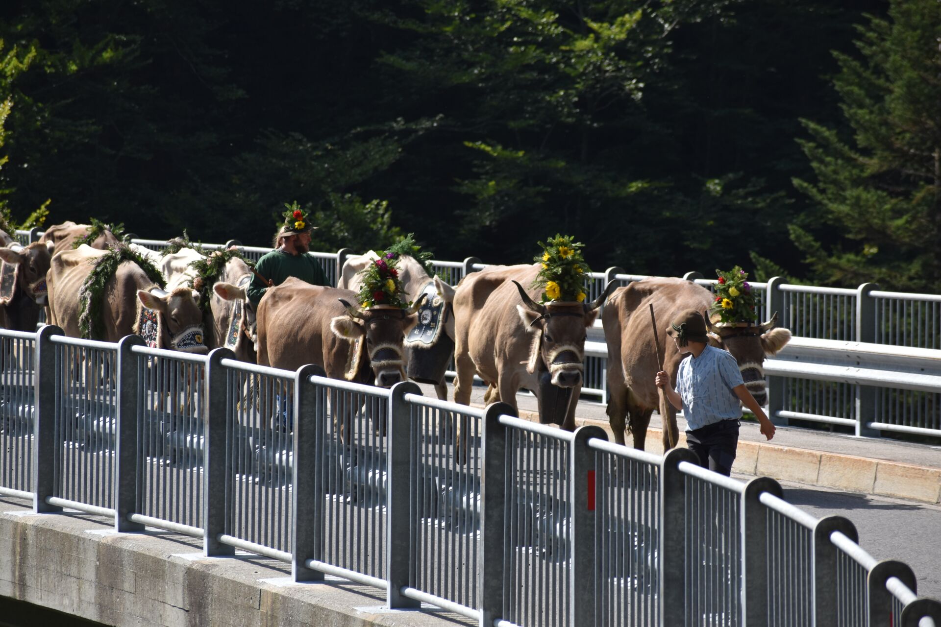 Weit durchs Tal klingen dann die Glocken und Treicheln, die extra für diesen Tag den Kühen und Geissen um den Hals gehängt werden und alle Köpfe der Tiere und der Hirten werden dann mit schönsten Blumenkränzen geschmückt, um wehmütig und dankbar von der Alp Abschied zu nehmen.