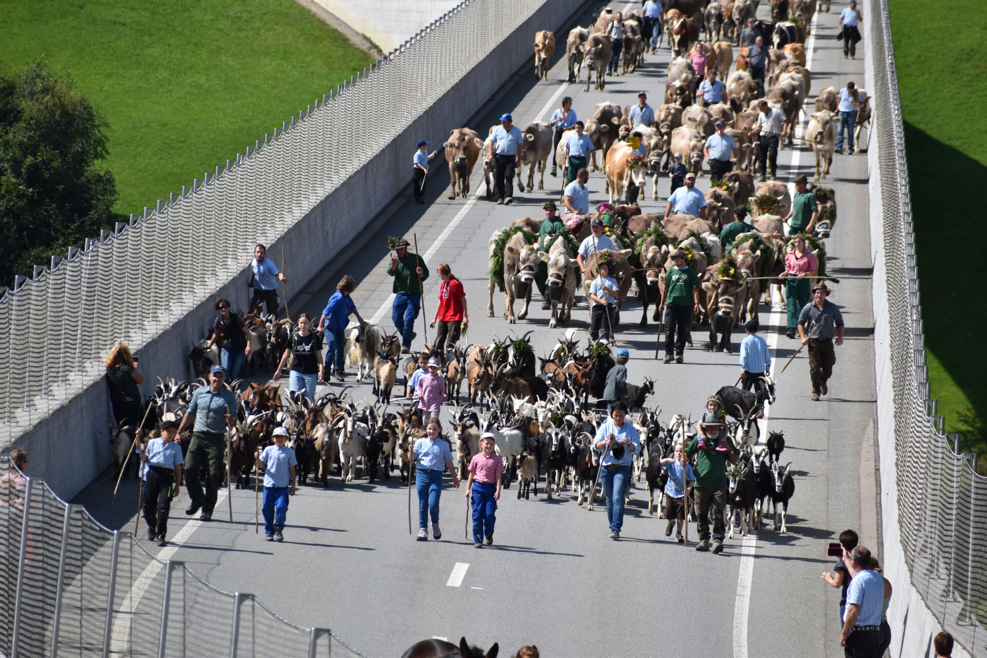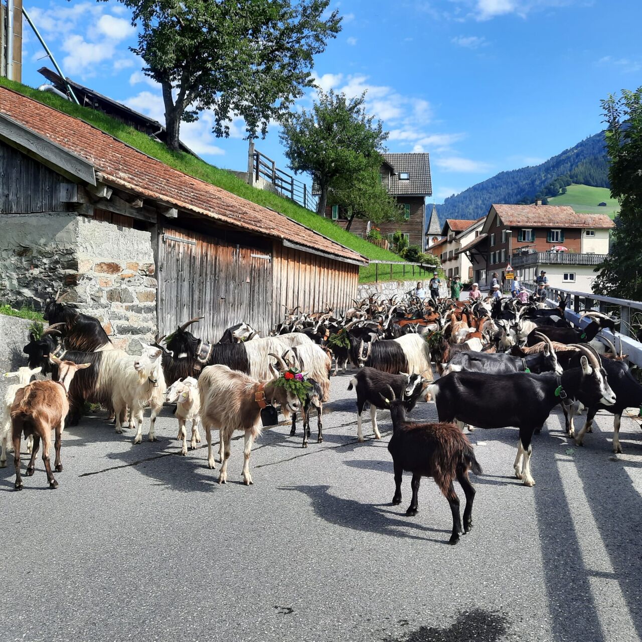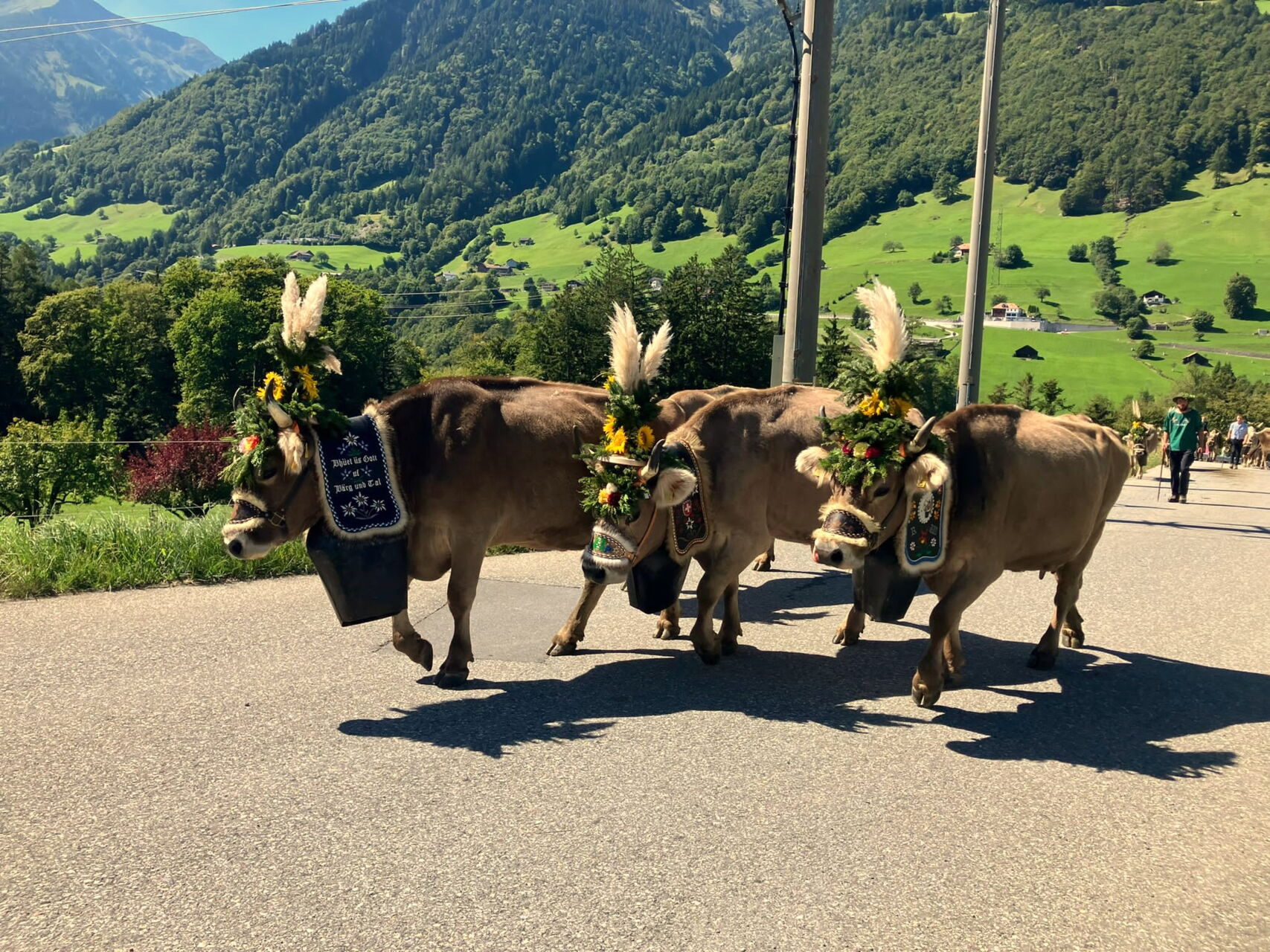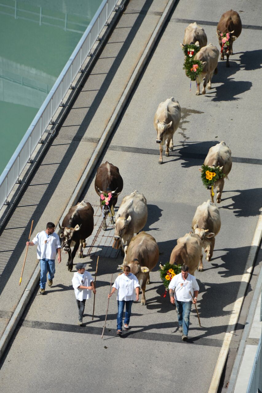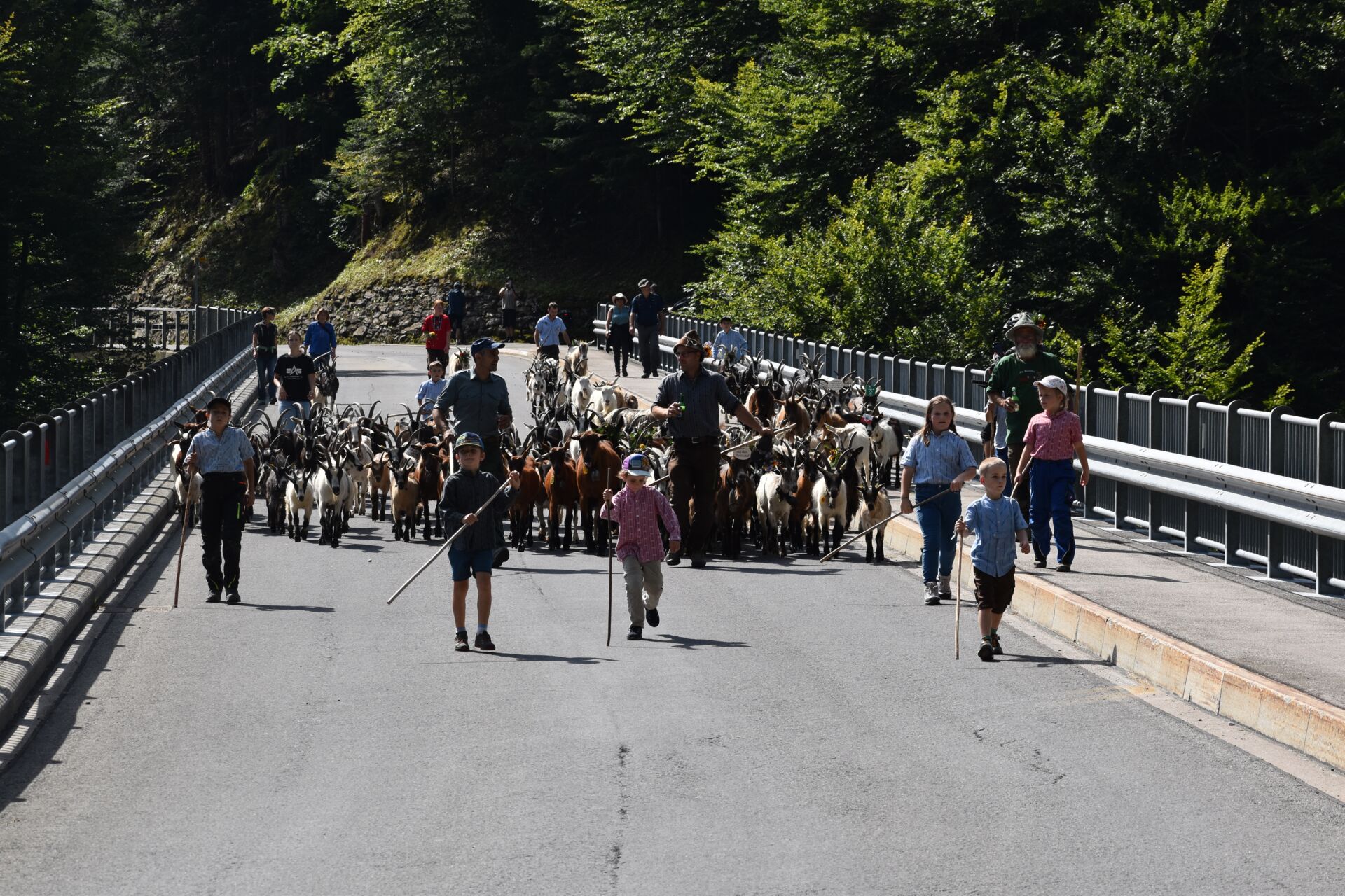 Weit durchs Tal klingen dann die Glocken und Treicheln, die extra für diesen Tag den Kühen und Geissen um den Hals gehängt werden und alle Köpfe der Tiere und der Hirten werden dann mit schönsten Blumenkränzen geschmückt, um wehmütig und dankbar von der Alp Abschied zu nehmen.