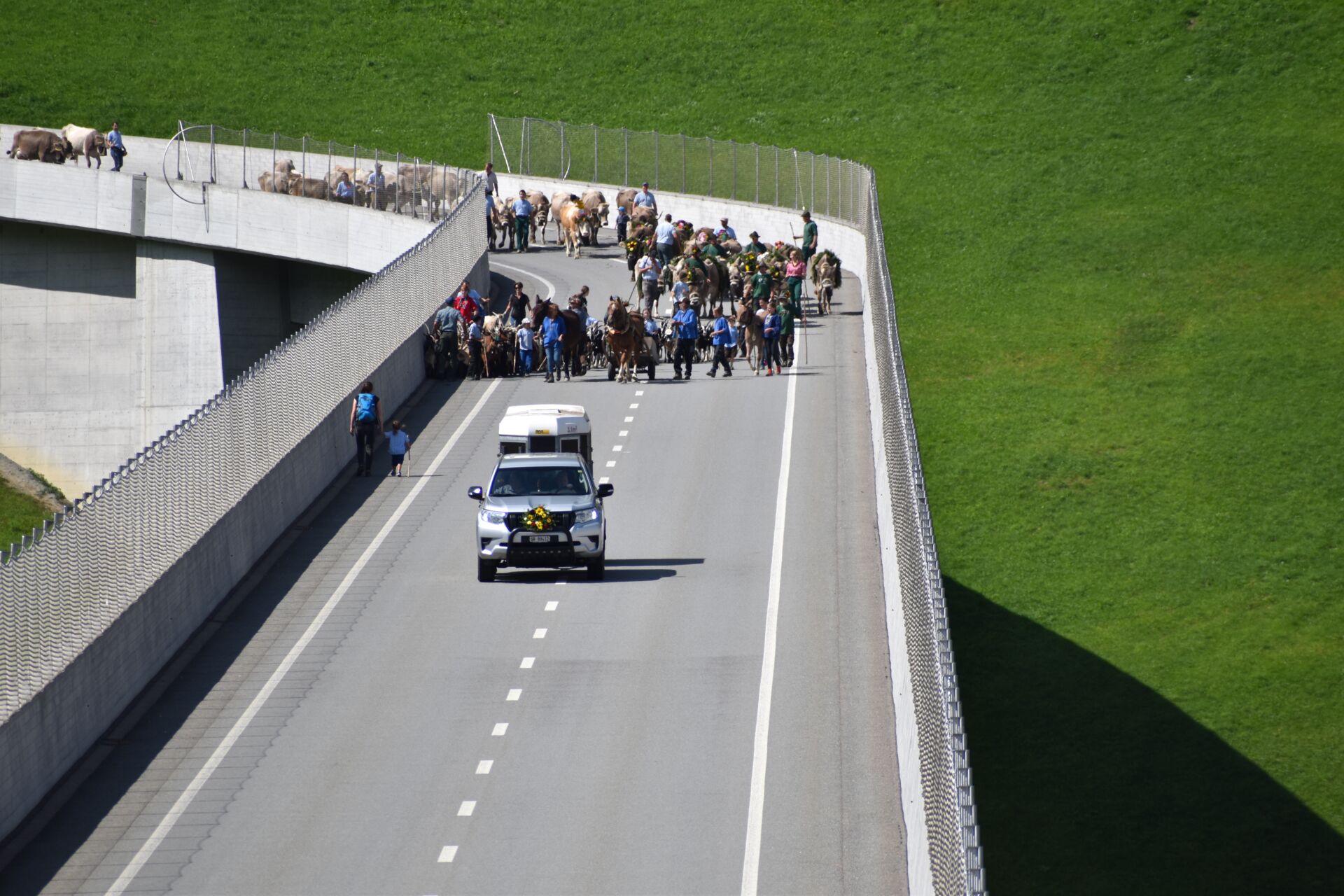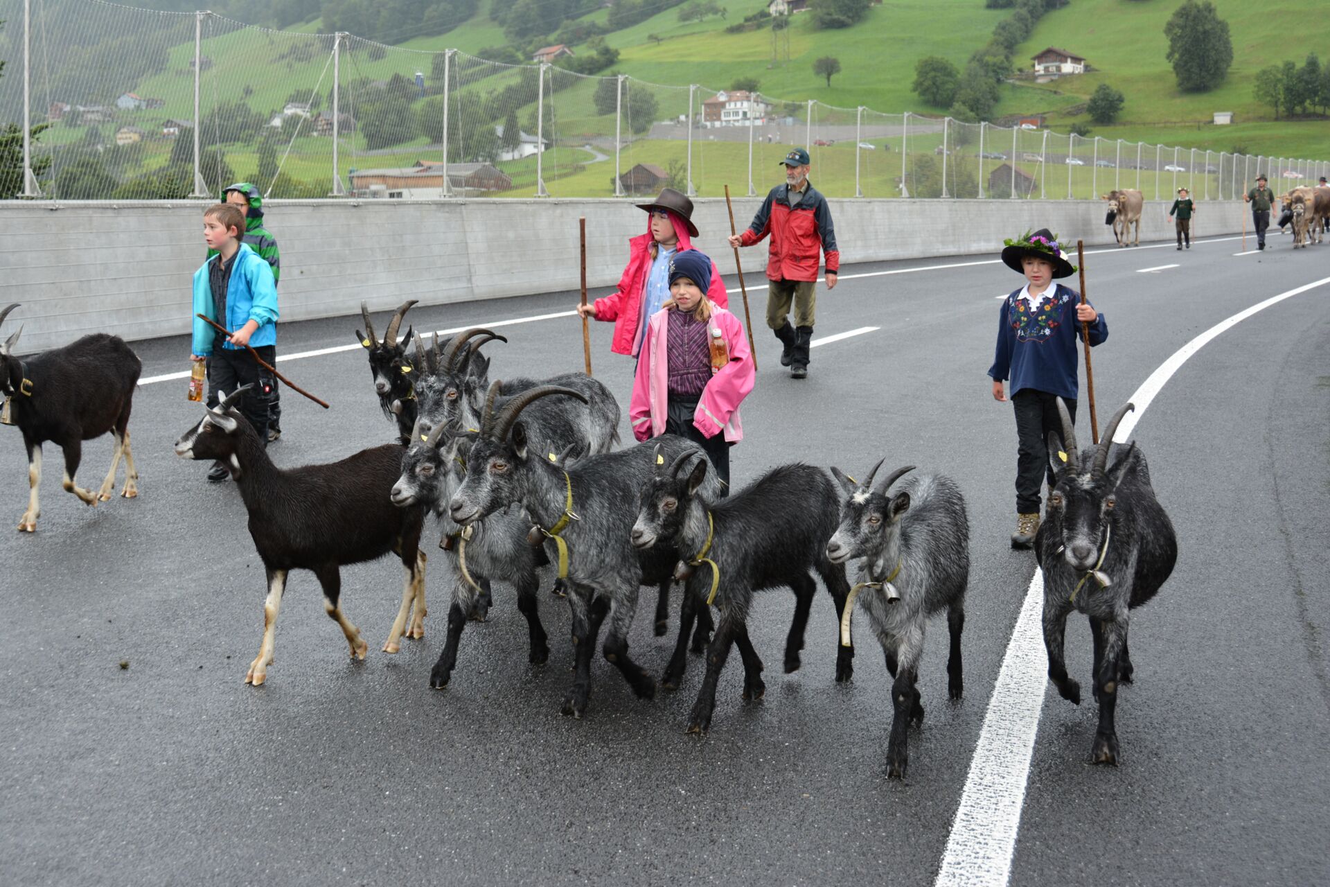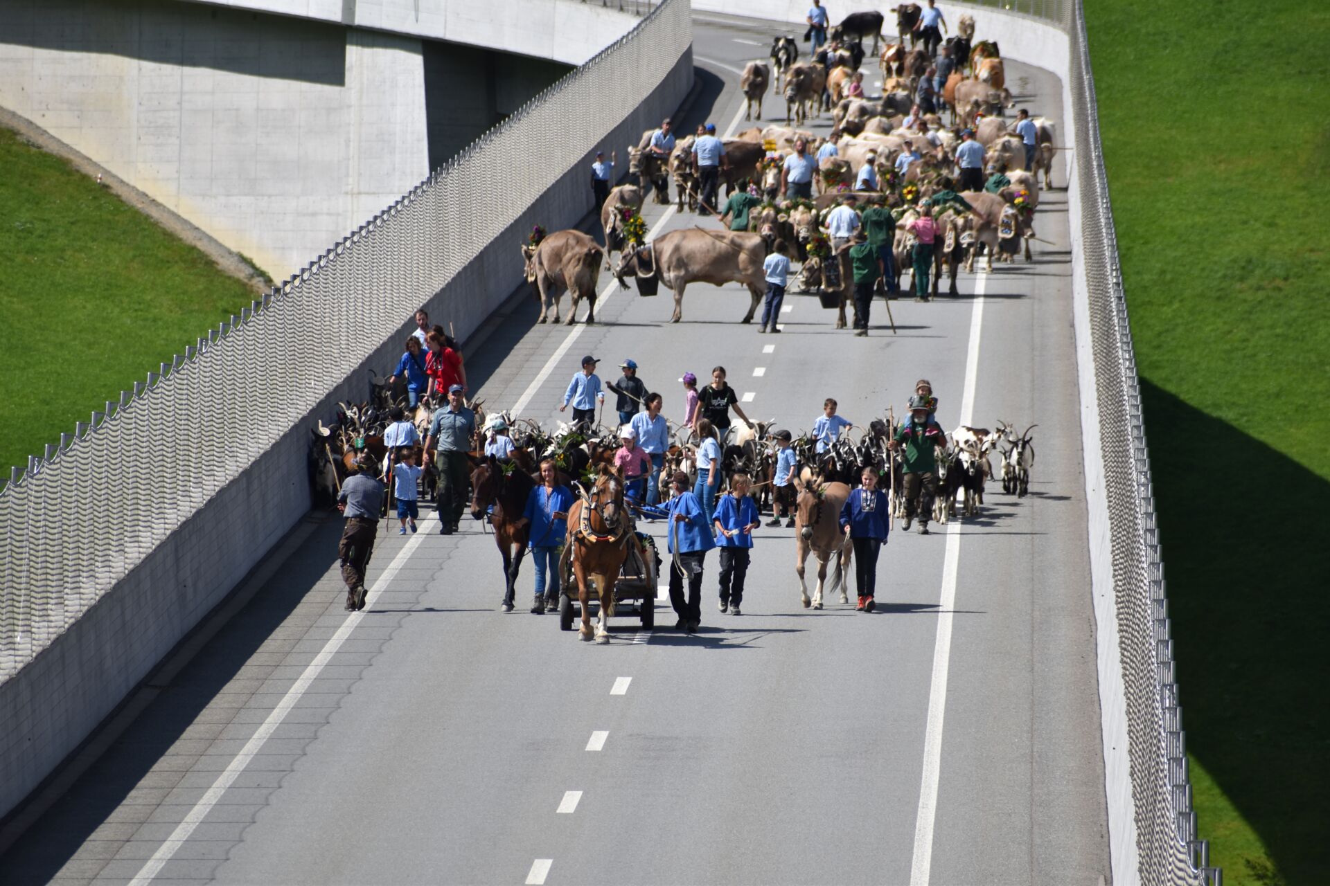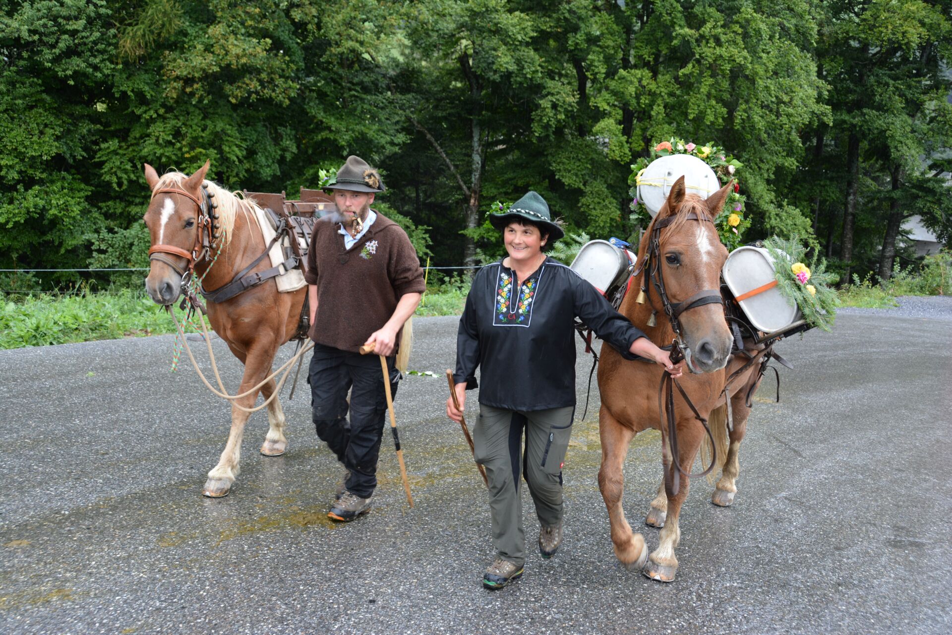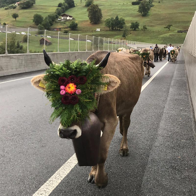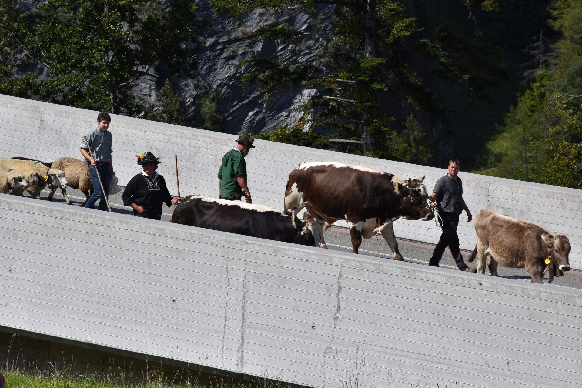 Weit durchs Tal klingen dann die Glocken und Treicheln, die extra für diesen Tag den Kühen und Geissen um den Hals gehängt werden und alle Köpfe der Tiere und der Hirten werden dann mit schönsten Blumenkränzen geschmückt, um wehmütig und dankbar von der Alp Abschied zu nehmen.