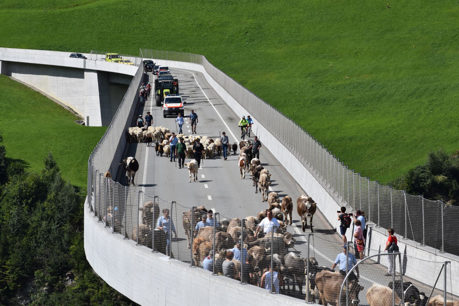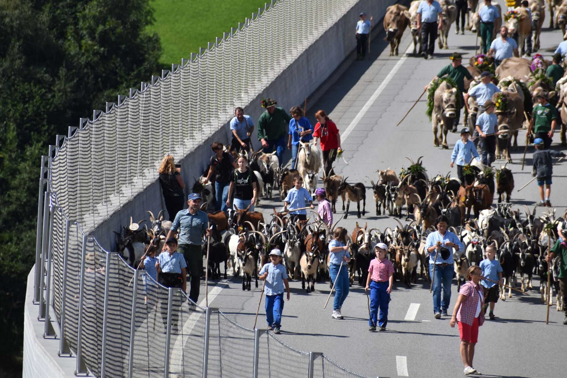 Ist der Sommer zur Zufriedenheit aller Beteiligten verlaufen; die Tiere wohlgenährt und konnte die Alpsaison ohne grössere Unfälle verbracht werden, nehmen Kühe, Geissen und Jak, das Alpteam, die Helfer und Bestösser den Weg nach Pfäfers unter die Klauen/Füsse und präsentieren sich noch ein letztes Mal von ihrer schönsten Seite.
